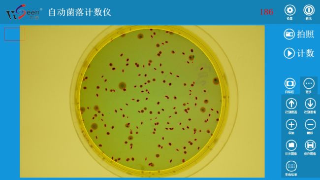 3、★對無蔓延菌落生長、菌落數(shù)300CFU以內的平板,一鍵拍照Ai智能自動計數(shù)精度≥98%(對標準菌株的計數(shù)精度達99.3%以上),極少修正即達100%正確。分析速度:50~500個菌落/s(計數(shù)分析耗時1~4秒)。對顯色培養(yǎng)基培養(yǎng)出來的大腸桿菌群也能有效自動計數(shù)??勺詣幼R別計數(shù)≥0.1mm的菌落。