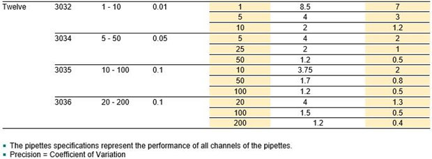EVOLVE手動可調(diào)容量移液器的技術參數(shù):