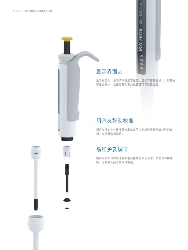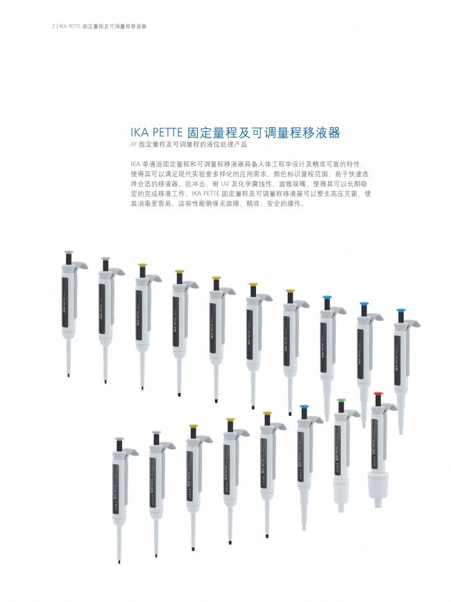 IKA 單通道可調(diào)量程的移液器具備人體工程學(xué)設(shè)計(jì)及精準(zhǔn)可靠的特性,使得其可以滿足現(xiàn)代實(shí)驗(yàn)室多樣化的應(yīng)用需求。顏色標(biāo)識(shí)量程范圍,易于快速選擇合適的移液器;抗沖擊、耐 UV 及化學(xué)腐蝕性、圓錐吸嘴,使得其可以長(zhǎng)期穩(wěn)定的完成移液工作;整支高壓滅菌,使其消毒更容易。這些性能確保IKA無(wú)故障、精準(zhǔn)、安全的移液技術(shù)。