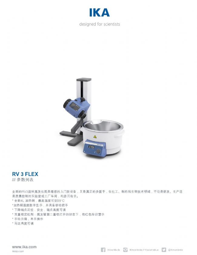 全新的RV3旋轉(zhuǎn)蒸發(fā)儀既是理想的入門款設(shè)備,又是真正的多面手,在化工、制藥和生物技術(shù)領(lǐng)域,不論是研發(fā)、生產(chǎn)還是質(zhì)量控制的實(shí)驗(yàn)室或工廠車間,均游刃有余。