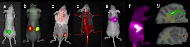 利用藍色,綠色,紅色和NIR四個通道,可對大多數(shù)熒光蛋白和熒光材料進行成像。FOBI在一個樣本中可以對多個熒光信號進行采集,例如可以在同時觀察活體動物體內(nèi)腫瘤的生長及藥物的分布。FOBI還可快速合并明場和熒光圖像,定位動物中的熒光。