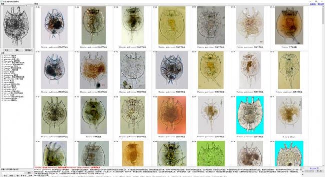 ▲1)中文、拉丁文雙語(yǔ)顯示的浮游生物專家圖庫(kù):藻類共15個(gè)門、1722個(gè)屬以上、15890個(gè)種以上;浮游動(dòng)物共26大類、2000個(gè)屬以上、9860個(gè)種以上。涵蓋中國(guó)各流域、海域的常見藻類、浮游動(dòng)物。已有有效鑒定比對(duì)用圖庫(kù)量29.6萬張以上。